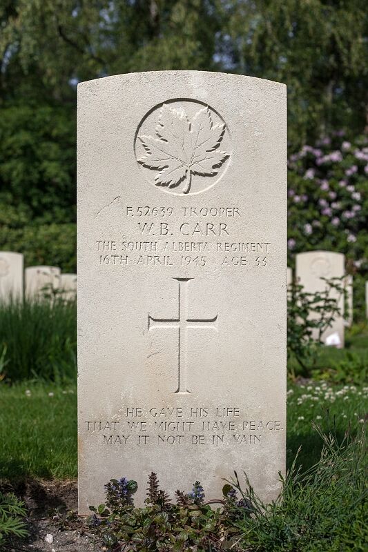Historical Information: The Netherlands fell to the Germans in May 1940 and was not re-entered by Allied forces until September 1944. The great majority of those buried in Holten Canadian War Cemetery died during the last stages of the war in Holland, during the advance of the Canadian 2nd Corps into northern Germany, and across the Ems in April and the first days of May 1945. After the end of hostilities the remains of over 1,300 Canadian soldiers were brought together into this cemetery.