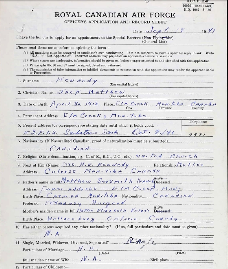 Son of Matthew Sexsmith Kennedy, and of Hattie Elizabeth Kennedy, of Red Lake, Ontario, Canada.