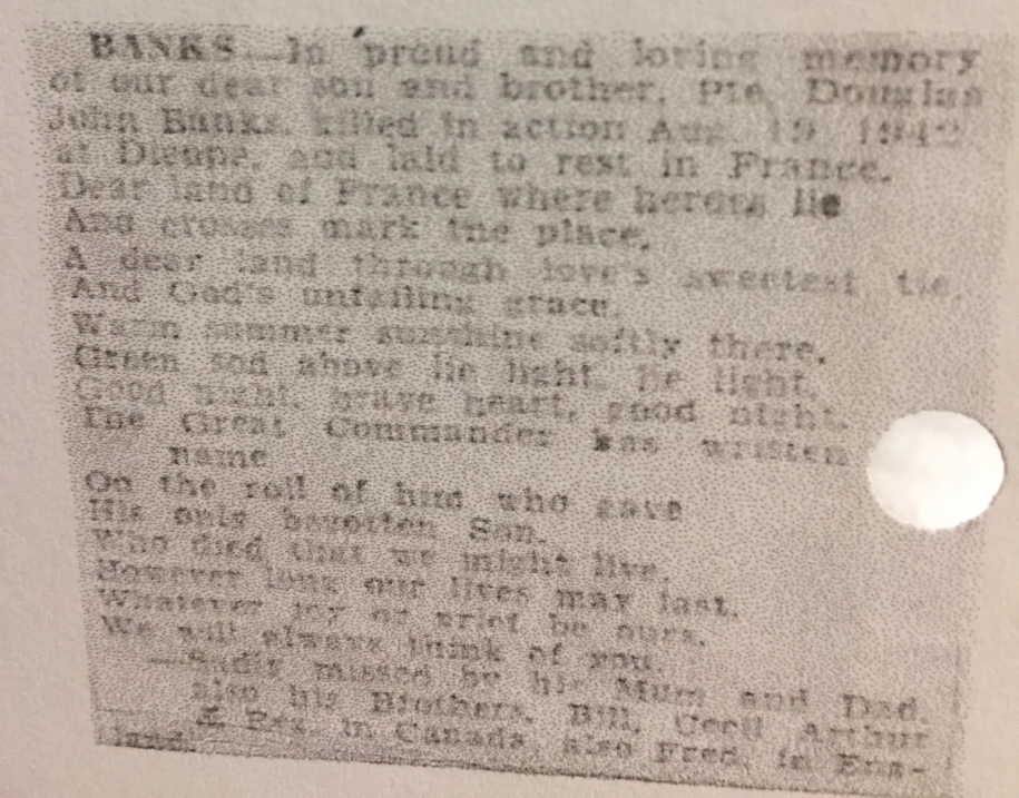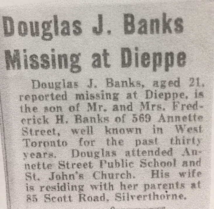 Son of Frederick H. and Elizabeth J. Banks, of Toronto, Ontario. Husband of Marjorie A. Banks, of Toronto.
