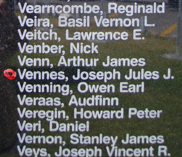Son of William and Antoinette Vennes, of Grand-Mere, Province of Quebec, Canada.