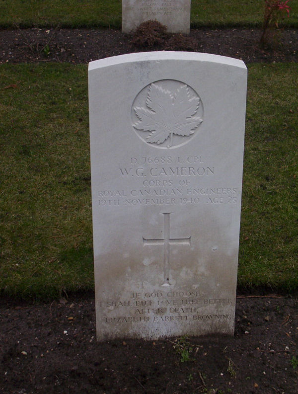 Son of William Robert and Gladys Cameron, of Sawyerville, Province of Quebec, Canada; husband of Hilda A. Cameron, of Sawyerville.