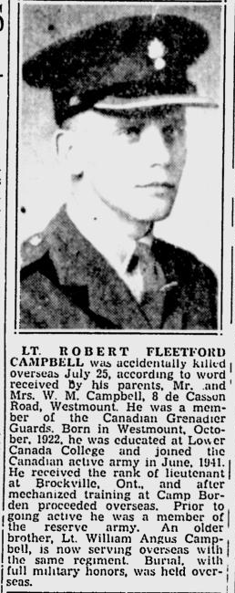 Brother of Lieutenant William Angus Campbell, who died on September 19, 1944, while serving with the Canadian Grenadier Guards.