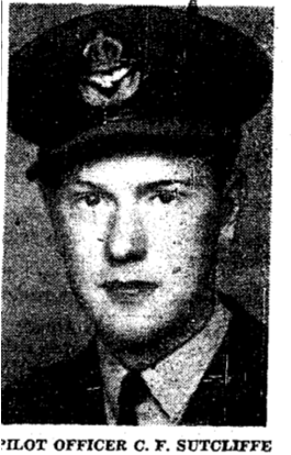 Born in Avon, Ontario in 1915, and raised in Georgetown, Ontario. Son of the Revd. Joseph Fletcher Sutcliffe, B.D., LL.D., and Agnes Bertha (née Mossip) Sutcliffe of St. Marys, Ontario. Husband of Blanche Olive Sutcliffe, of Cheltenham, Gloucestershire. Cousin of Lieutenant Harrison Taylor Mossip of the Royal Canadian Air Force who lost his life on March 7, 1945. Flying Officer Sutcliffe is commemorated on a bronze plaque located on the cenotaph in St. Marys, Ontario.