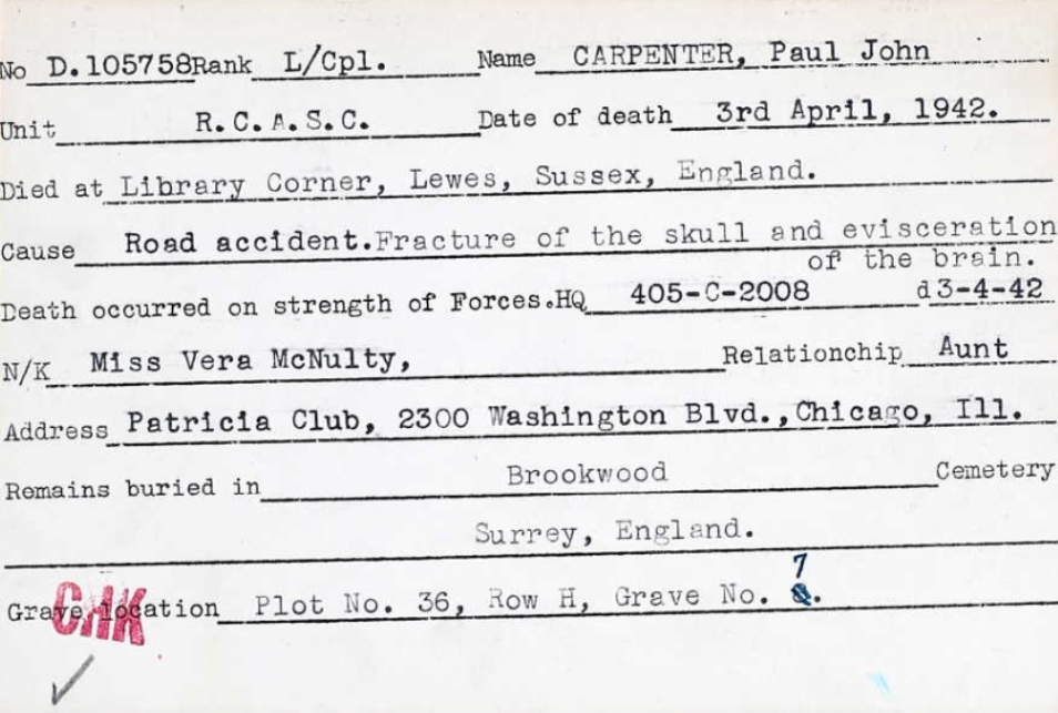 Son of John and Viola Kathleen Carpenter. Nephew of Vera McNulty, of Chicago, Illinois, U.S.