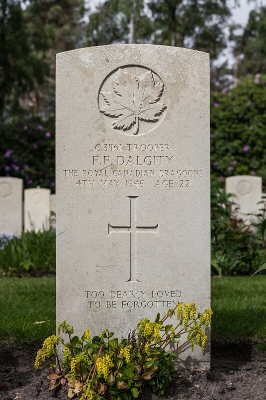 Historical Information: The Netherlands fell to the Germans in May 1940 and was not re-entered by Allied forces until September 1944. The great majority of those buried in Holten Canadian War Cemetery died during the last stages of the war in Holland, during the advance of the Canadian 2nd Corps into northern Germany, and across the Ems in April and the first days of May 1945. After the end of hostilities the remains of over 1,300 Canadian soldiers were brought together into this cemetery.