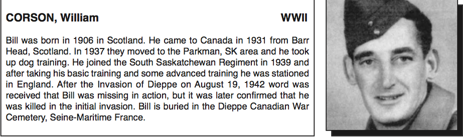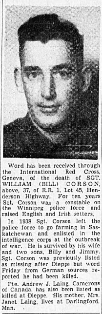 Son of James and Mary Corson. Husband of Jean Corson of Winnipeg, Manitoba.