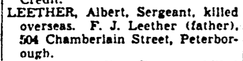 Son of Francis James Leether and Clara Leether, of Peterborough, Ontario.