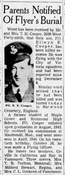 Son of Thomas H. Cooper and Elizabeth Pearl Cooper, of Vancouver. British Columbia, Canada.