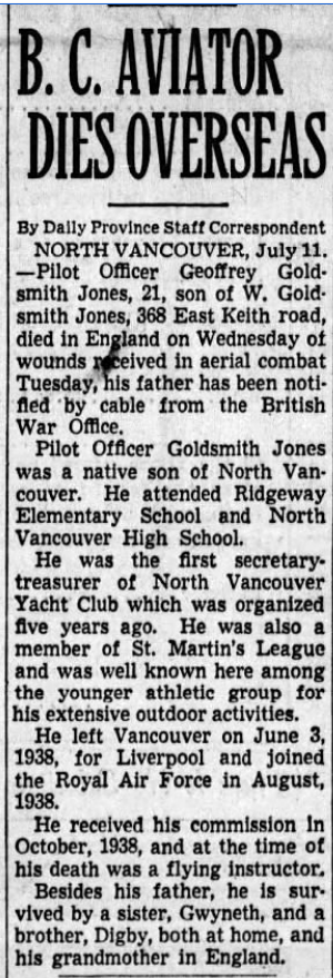 Son of William and Edith Mary Goldsmith Jones, of North Vancouver, British Columbia, Canada.
