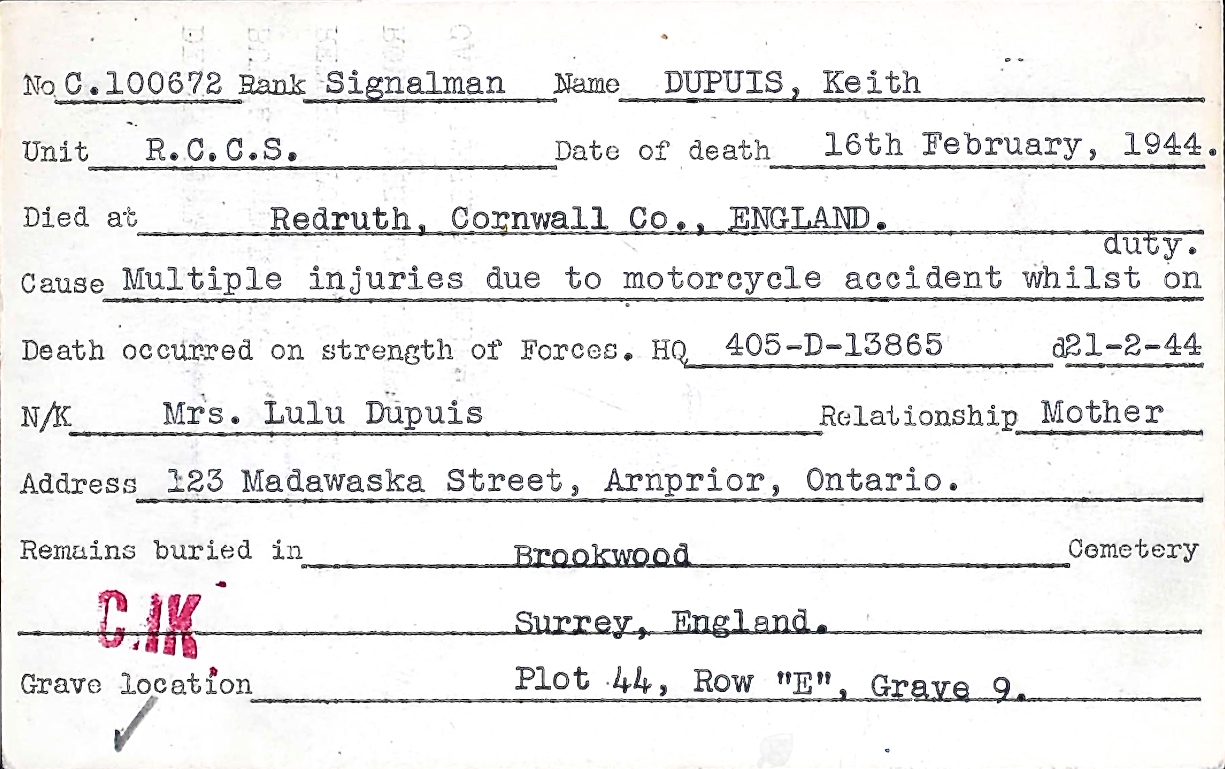 Do you have photographs, information or a correction relating to this individual’s virtual memorial? Learn more about the CVWM and the information we collect.