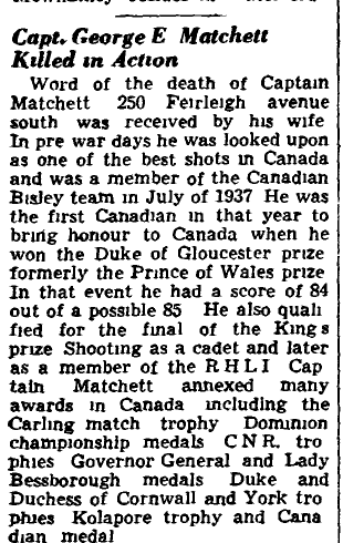 Son of Montgomery Wellington Matchett and Jane Grace Matchett, of Hamilton, Ontario; husband of Elizabeth Dunnachie Matchett, of Hamilton.