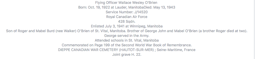 Digital gallery of Flying Officer Wallace Wesley O'Brien