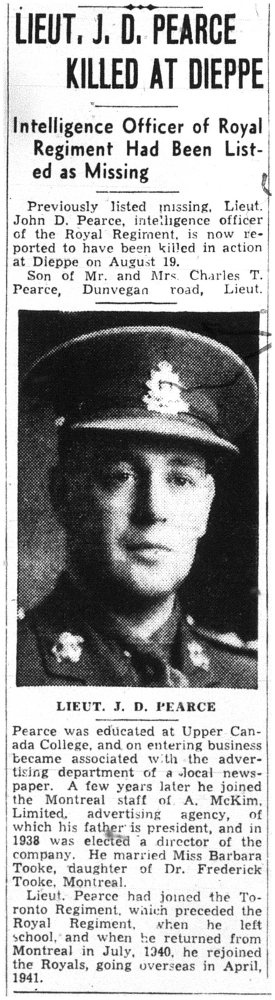 Son of Charles Taylor Pearce and Emily May Pearce, of Toronto, Ontario; husband of Barbara Morecroft Pearce, of Toronto.