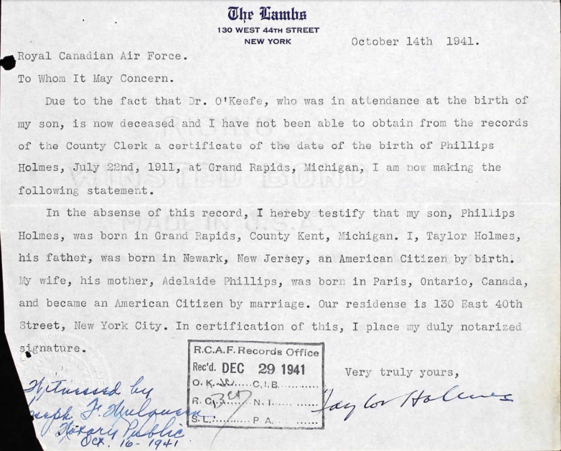 Son of Taylor and Edna Phillips Holmes, of New York City.