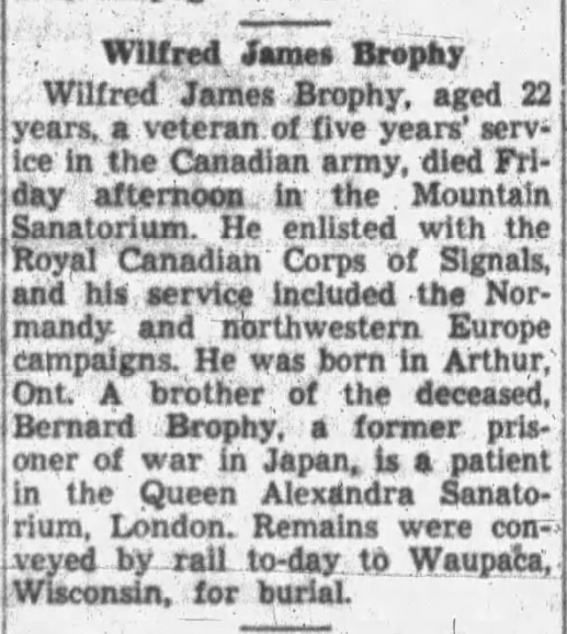Foster-son of Mr. and Mrs. Chester S. Bumpus, of King. Brother of Bernard Brophey, of London, Ontario.