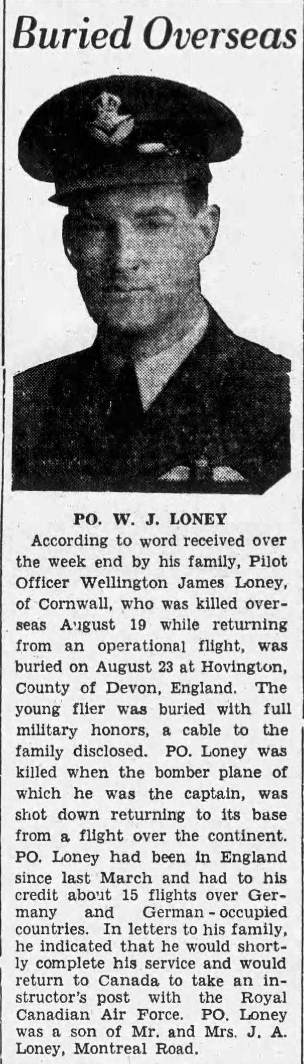 Son of John A. Loney, and Catherine C. Loney, of Cornwall, Ontario.