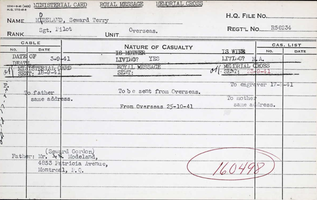 Son of Seward Gordon and Bertha Jane Modeland, of Montreal, Province of Quebec, Canada.