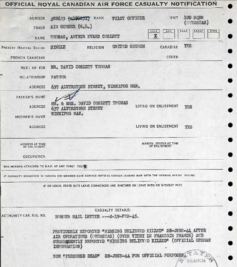Digital gallery of Pilot Officer Arthur Evans Coslett Thomas