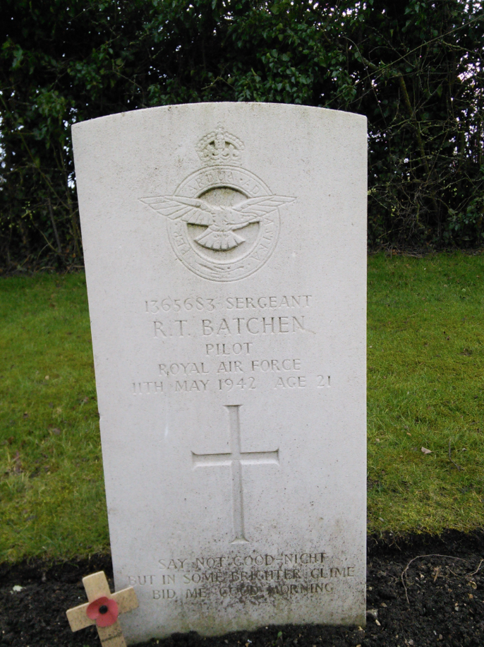 Son of Elizabeth (née Bushman) and William Tait Batchen of Rouleau, Saskatchewan. William Tait Batchen was born in Peebles, Scotland and married Elizabeth in Prince Albert, Saskatchewan. He started a law practice. They had three children, a daughter, Frances who become a concert pianist in New York, Ronald and his brother, Sergeant Alexander George Batchen, died on September 12, 1941 at age 20, while serving with the Royal Canadian Air Force. He was the eldest of the children.