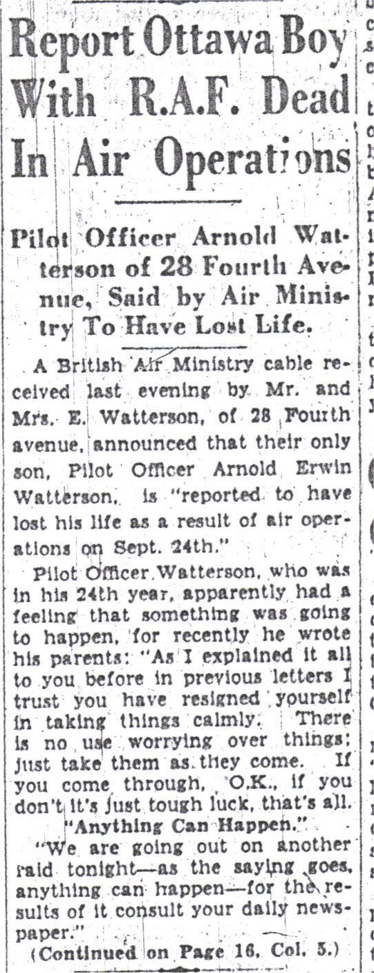 Digital gallery of Flying Officer Arnold Irwin Watterson