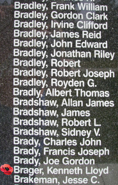 Son of Ole and Mabel (née Gillund) Brager. The Government of Saskatchewan named Brager Lake in memory of Kenneth Lloyd Brager, Watson, Saskatchewan. The plaque reads: On Active Service to His Country Killed in Action, December 20, 1943, Age 23, Hotton Cemetery. Brager Lake is 850 kms north of Watson, close to the North West Territory Border. (059o 21'N, 106o56'W)