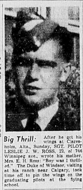 Son of Richard Rose Ross and Elizabeth Hazel Ross, of Winnipeg, Manitoba, Canada.