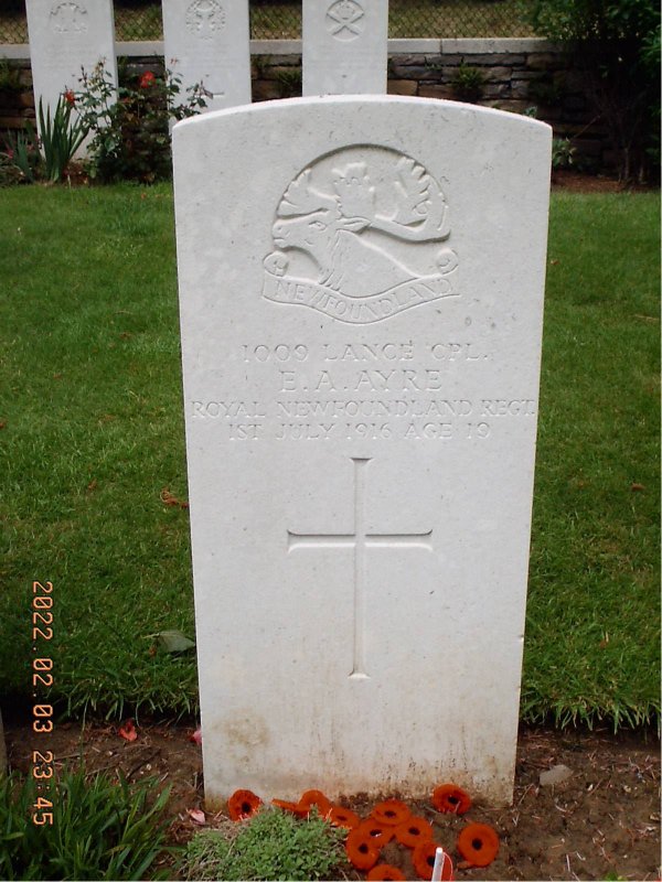 Son of Edward and Selina Ayre, of Isle Aux Morte, Newfoundland.