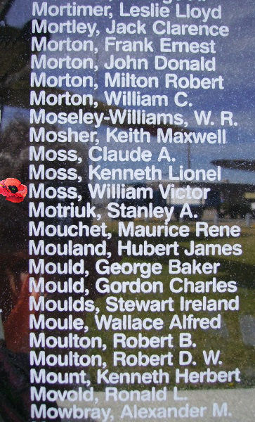 Son of Francis Edward and Edith Moss, of Galt, Ontario, Canada.