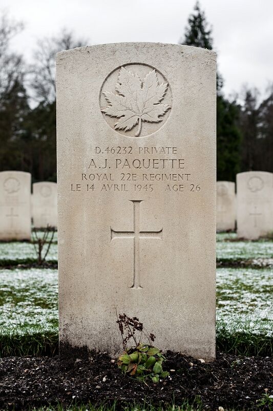 Son of Felix and Sarah Paquette, of Eastman, Province of Quebec.