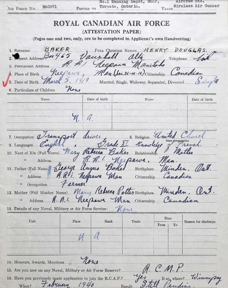 Son of George A. Baker and Mary R. Baker, of Neepawa, Manitoba. Husband of Julia Baker.