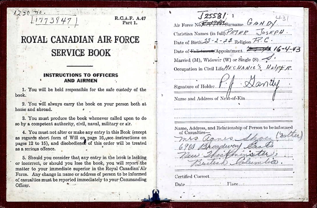 Digital gallery of Flying Officer Peter Joseph Gandy