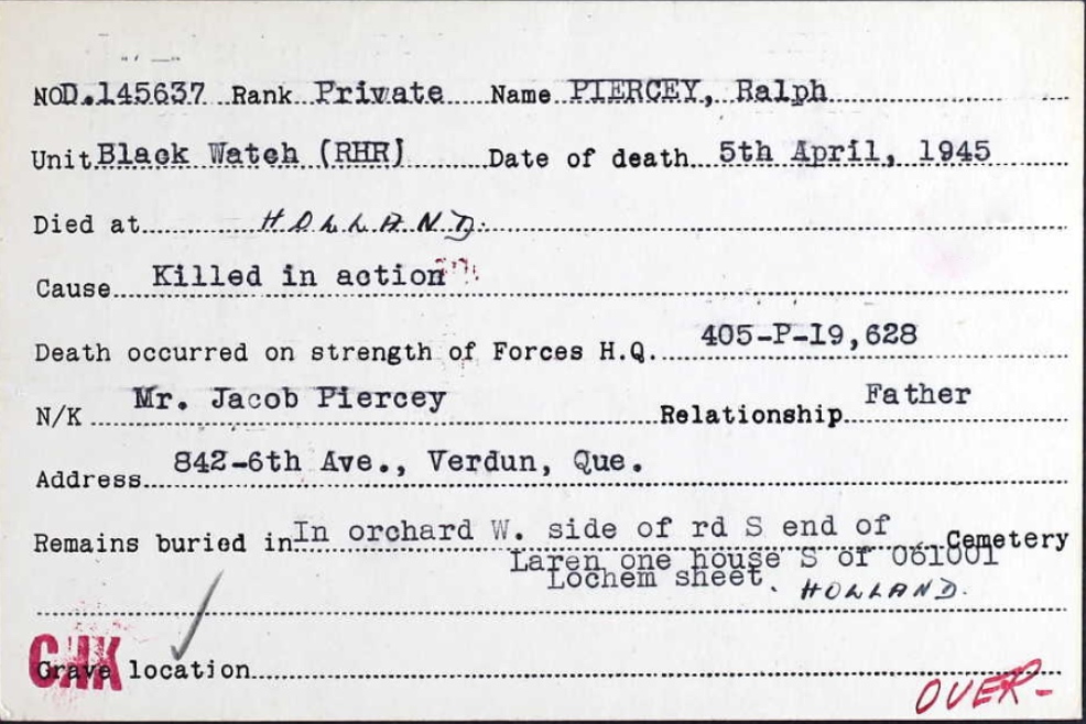 Historical Information: The Netherlands fell to the Germans in May 1940 and was not re-entered by Allied forces until September 1944. The great majority of those buried in Holten Canadian War Cemetery died during the last stages of the war in Holland, during the advance of the Canadian 2nd Corps into northern Germany, and across the Ems in April and the first days of May 1945. After the end of hostilities the remains of over 1,300 Canadian soldiers were brought together into this cemetery.