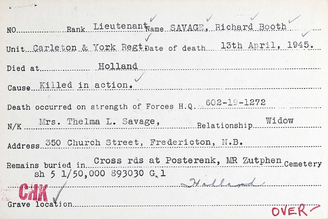 Historical Information: The Netherlands fell to the Germans in May 1940 and was not re-entered by Allied forces until September 1944. The great majority of those buried in Holten Canadian War Cemetery died during the last stages of the war in Holland, during the advance of the Canadian 2nd Corps into northern Germany, and across the Ems in April and the first days of May 1945. After the end of hostilities the remains of over 1,300 Canadian soldiers were brought together into this cemetery.