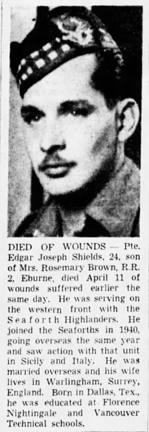 Son of Edgar D. and Rosemary Shields, of Vancouver, British Columbia. Husband of Elsie Shields.