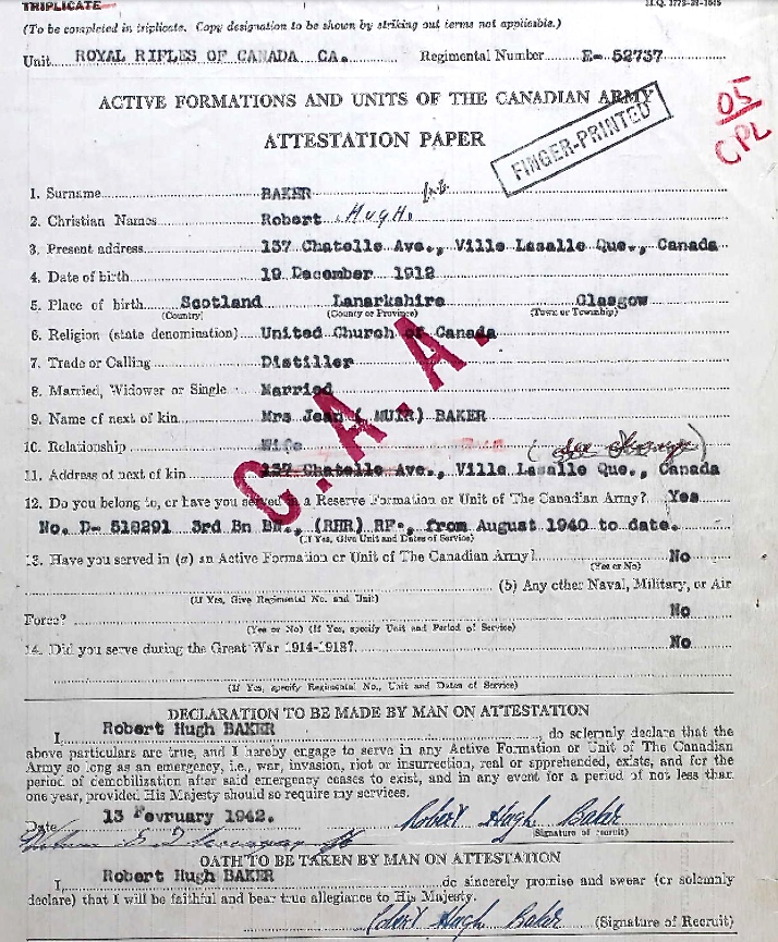 Digital gallery of Sergeant Robert Hugh Baker
