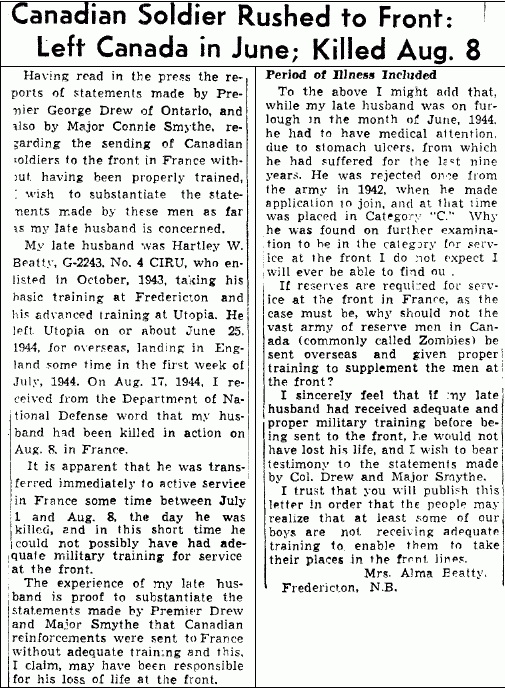 Son of William Egerton and Catherine Minetta Beatty. Husband of Alma Evelyn Beatty, of Moncton, New Brunswick.