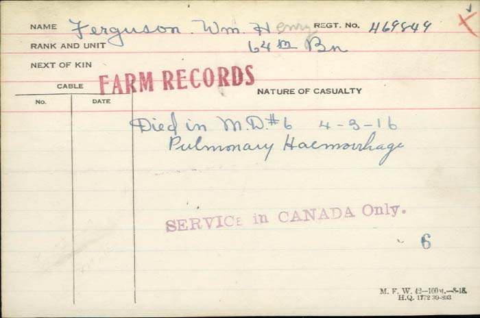 Brother of Bessie Ferguson, of South St., Halifax, Nova Scotia.