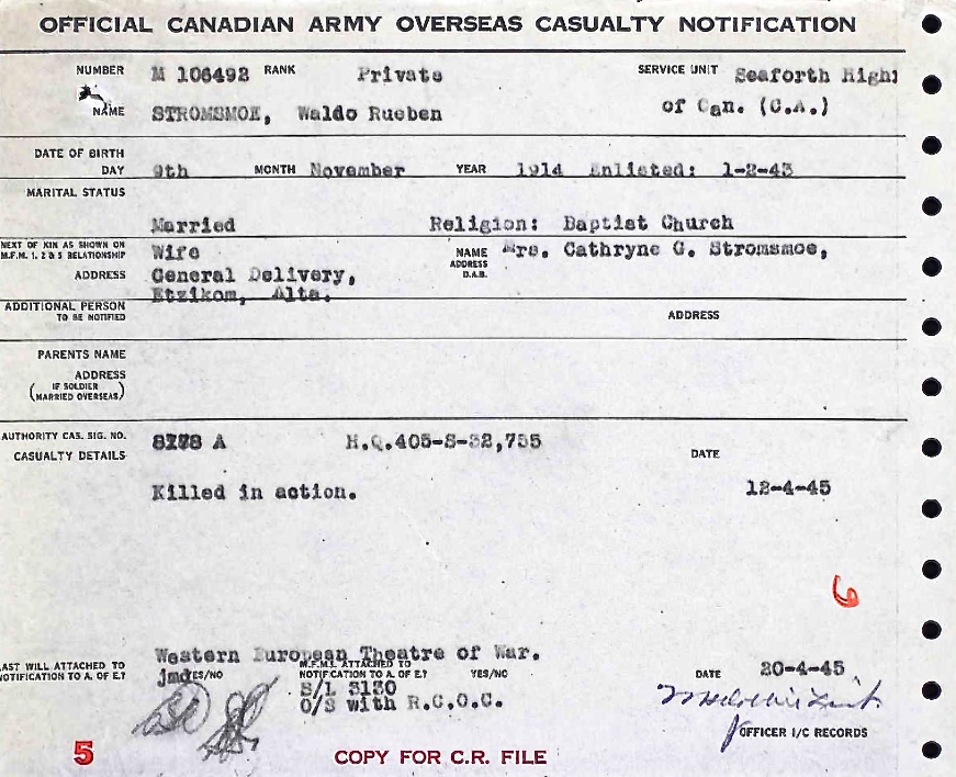 Digital gallery of Private Waldo Rueben Stromsmoe
