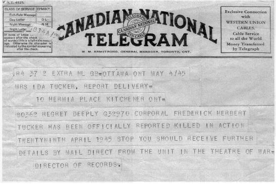 Son of Ernest G. and Ida Tucker, of Kitchener, Ontario.