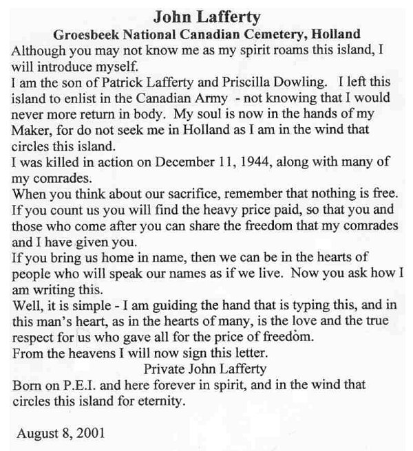 On the Memorial in the Canadian War Cemetery at Groesbeek are inscribed the following words: