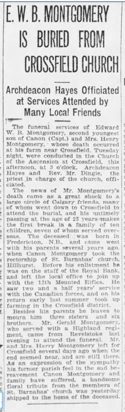 Son of the Rev. Henry Montgomery and Mary B. Montgomery, of St. George's Rectory, Banff, Alta.