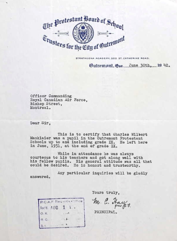 Flying Officer Charles Wilbert Macklaier