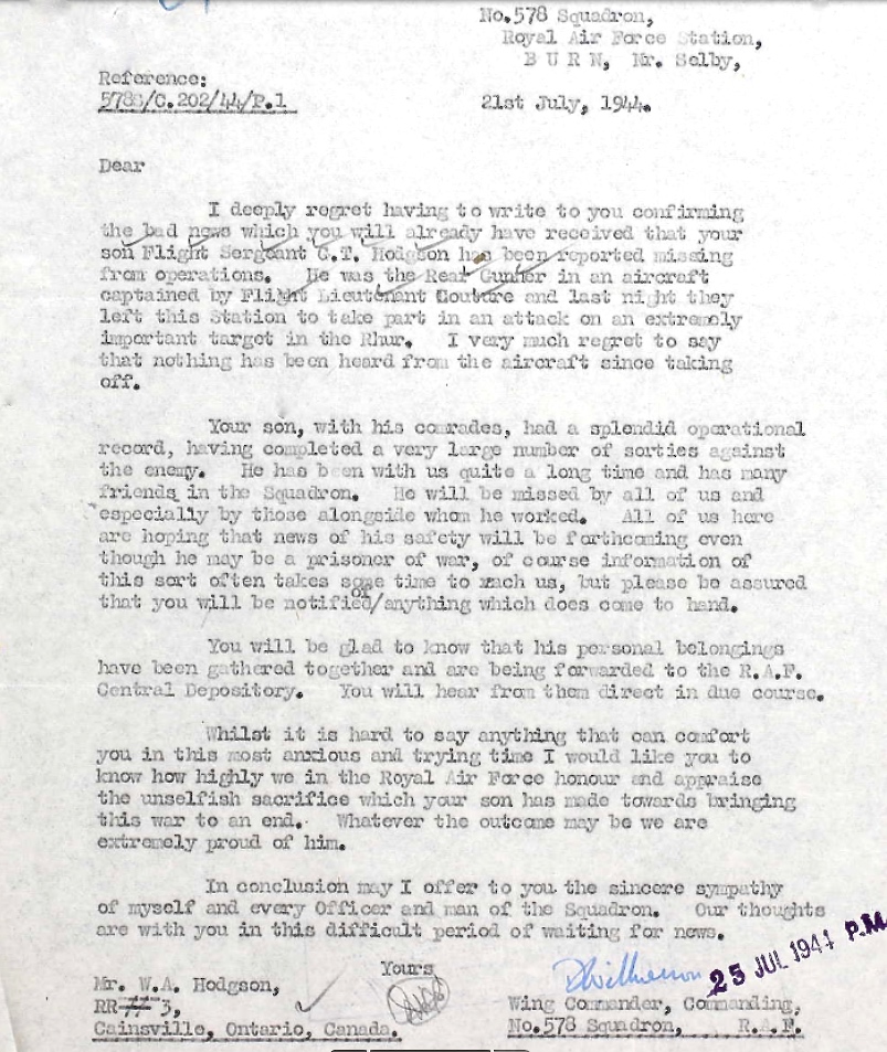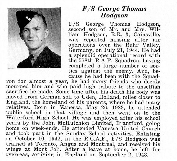 Son of William and Jessie Hodgson of Vanessa, Ontario.