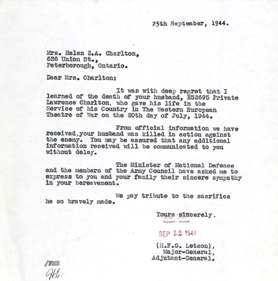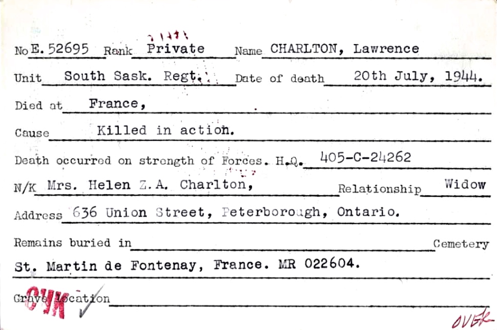 Son of William James Charlton and Margaret Anne Charlton; husband of Helen Aileen Zella Charlton, of Peterborough, Ontario.