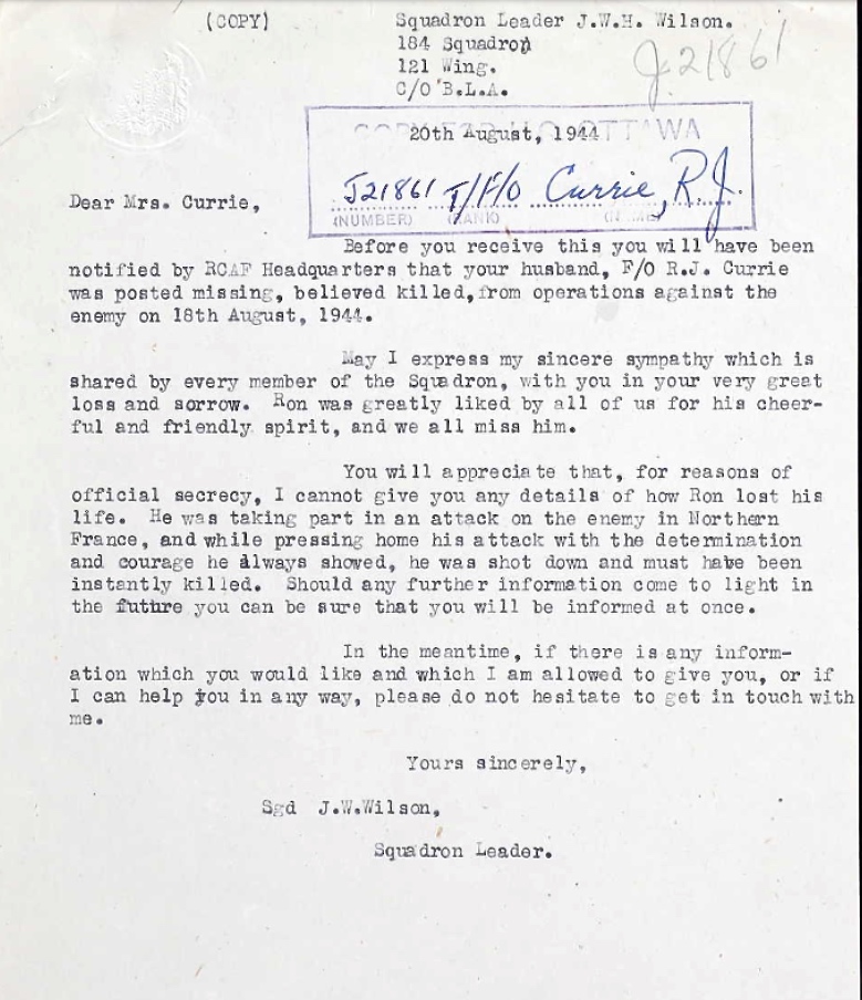 Flying Officer Ronald James Currie