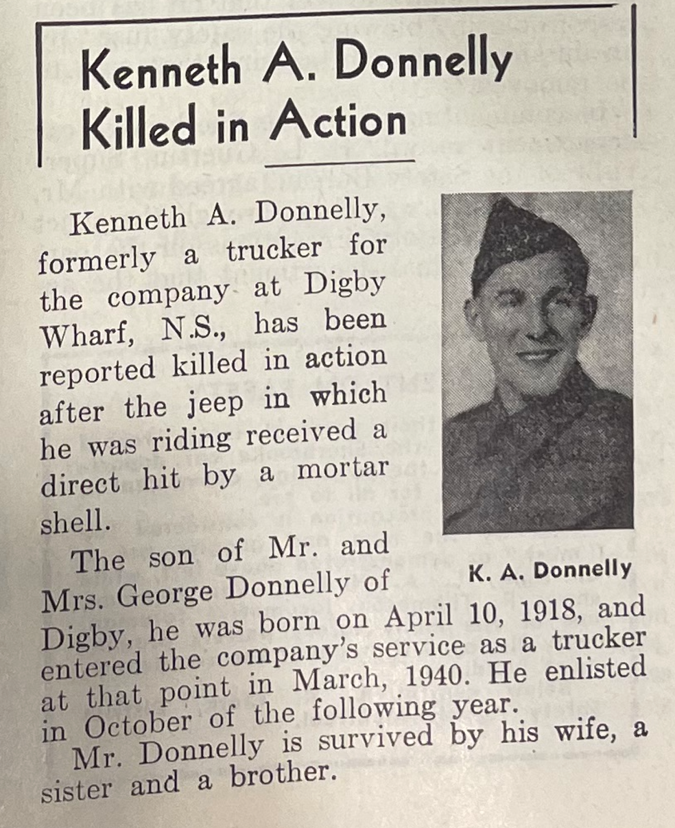 Son of George Angus and Sarah Ameila Donnelly, of Digby, Nova Scotia; husband of Ida Glendeane Donnelly, of Clementsport, Annapolis Co., Nova Scotia.