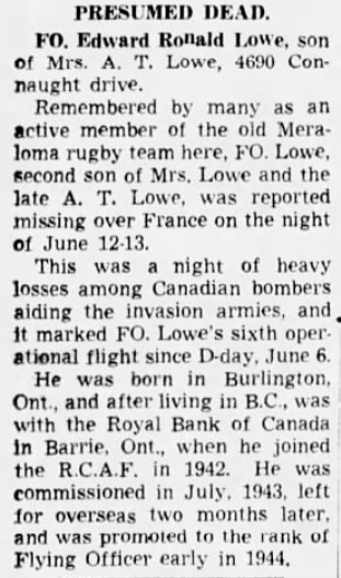Son of Abram Thomas Lowe and Helen Winifred Lowe, of Vancouver, British Columbia, Canada.
