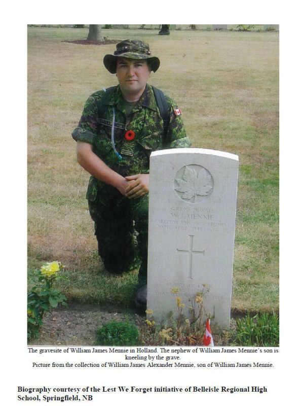 Brother of Private George Alexander Mennie, who died while serving with the Cameron Highlanders of Ottawa.