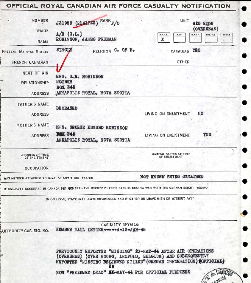 Digital gallery of Flying Officer James Freeman Robinson