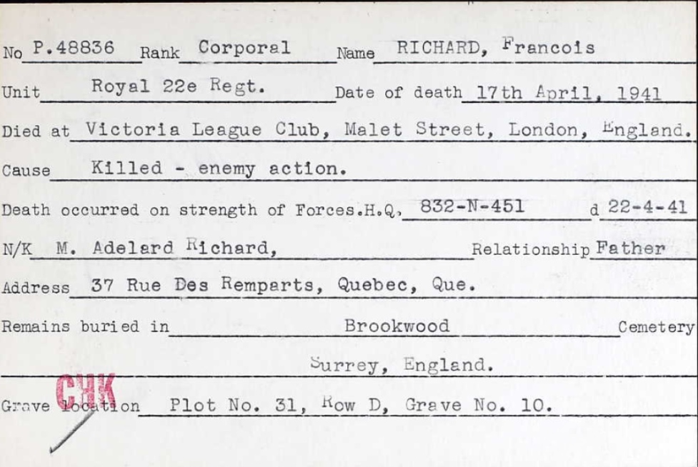 In 1917, an area of land in Brookwood Cemetery (originally The London Necropolis) was set aside for the burial of men and women of the forces of the Commonwealth and Americans, who had died, many of battle wounds, in the London district. This site was further extended to accommodate the Commonwealth casualties of the Second World War, and American, Belgian, Czech, Dutch, French and Polish plots containing the graves of Allied casualties. There are also German and Italian plots where prisoners of war lie buried.